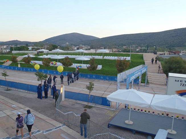 Marathonas, 8.16 Uhr Blick über den Startbereich und die Stadt Marathonas. |