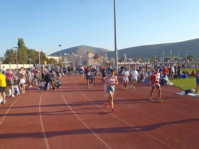 Marathon Stadion, Marathonas, 7.59 Uhr Allmählich wurde es dann auch voller auf der Laufbahn. |