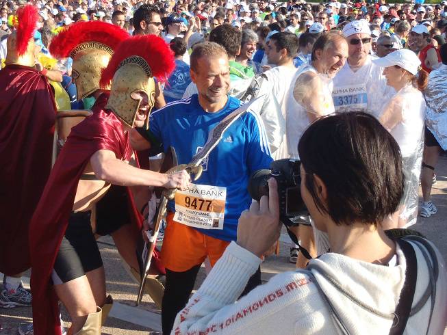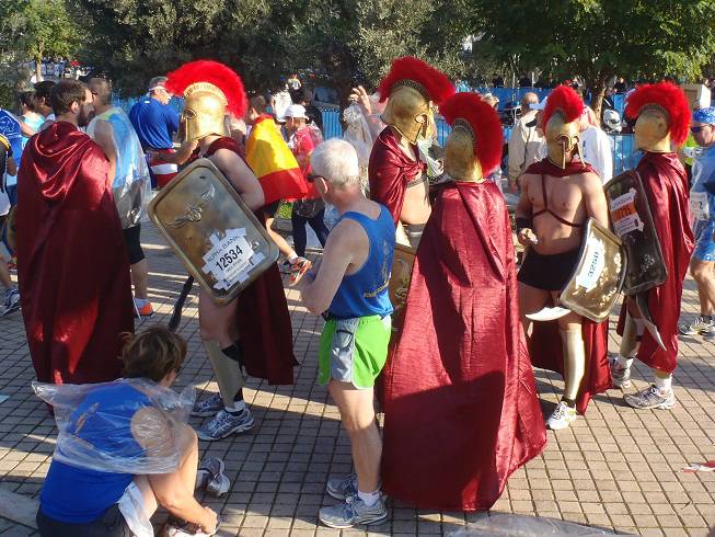 Marathonas, 8.40 Uhr Oh ha... im Gegensatz zur Originalschlacht von 490 v. Chr. haben es die Spartaner dieses Mal pünktlich nach Marathon geschafft. |
