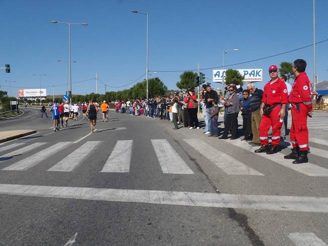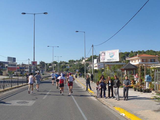 Christoforou Pikermi 10.58 Uhr / Km 21,5 Ich fragte mich immer wieder, ob die Leute jedes Jahr an der Strecke stehen oder nur zum Jubiläumslauf. Obwohl... mir konnte es ja egal sein. |
