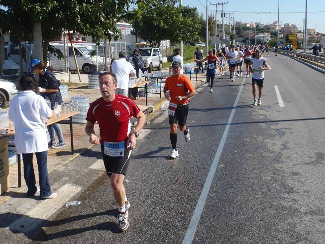 Leoforos Marathonos / Leoforos Sparton Gerakas 11.42 Uhr / Km 29,5 Endlich wieder ein Verpfle-gungsstand. Jetzt hätten ruhig auch noch ein paar mehr da sein können. Aber egal. Auf diesen hier habe ich ganz besonders gewartet! Vorne am Wasser lief ich vorbei, ... |