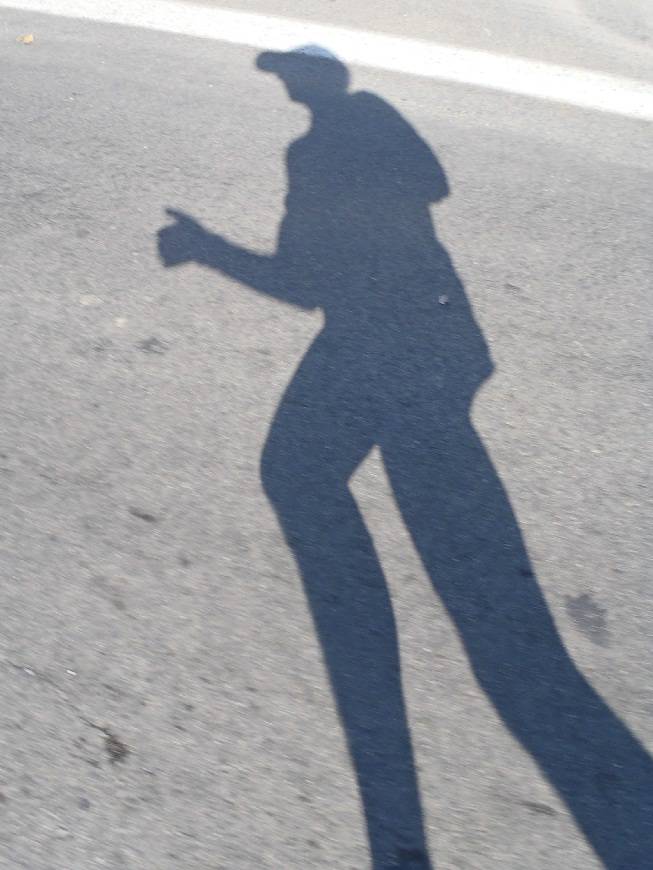 Leoforos Marathonos Gerakas 11.39 Uhr / Km 29,0 Ein Schatten-Selbstporträt. |
