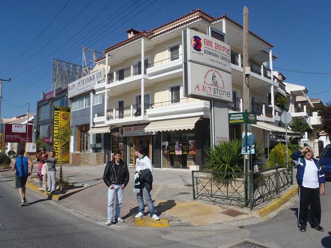 Leoforos Marathonos / Delvinakiou 11.20 Uhr / Km 26,0 Interessante Häuser gab es am Straßenrand zu sehen. Architektonisch kreativ sind die Griechen ja. Auch wenn nicht immer alles fertig gestellt wird. |