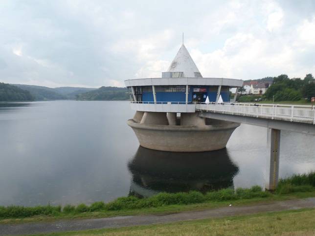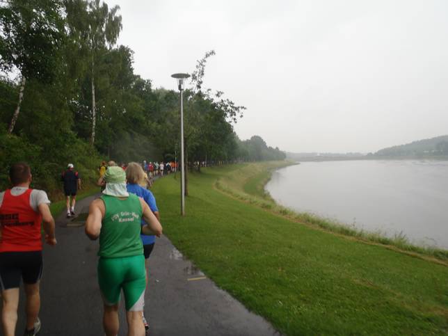 Twistesee 11.04 Uhr / Km 0,5 Die ersten beiden Kilometer geht es am Twistesee lang, ein 2,75 Km langer und bis zu 300 Meter breiter Stausee. Bei dem Regen war davon allerdings nicht viel zu sehen. |