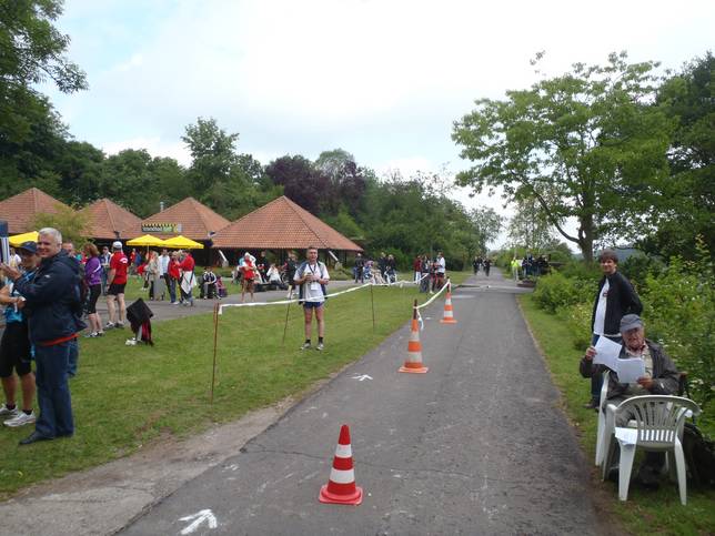 Twistesee Strandbad 15.30 Uhr / Km 42,18 Ja, ich hatte Glück. Es war die Kurve zum Ziel. Und so kam ich gerade noch unter 4:30 Stunden ins Ziel. Etwas irritierend war, daß das Ziel nicht direkt auf der Strecke war, sondern man noch einen kurzen Links-knick und dann unter einem Zeltdach durchlaufen mußte. Vermutlich war ich aber nur zu schnell... :-) 4:29:19,9 Stunden war meine offizielle Finisher-Zeit. Wie so oft bei Läufen, die per Hand gestoppt werden, gibt es auch die Zehntelsekunden auf der Urkunde. Damit erreichte ich Platz 81 von 105 Finishern, Platz 69 von 86 Herren und in meiner AK M40 Platz 14 von 16. Foto: |