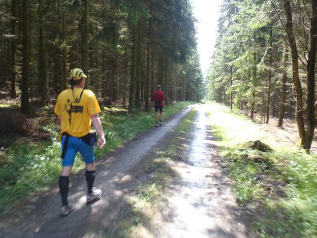 Wetterholz / Heidekreuz 14.00 Uhr / Km 28,5 Und immer noch lief ich. Auch die Passagen bergauf verfiel ich nicht ins Gehen. Wenn ich mich an dem Tag nicht so wirklich gut fühlte, dann lag es nicht an der Kondition der Beine, sondern am Knie rechts und dem allgemeinen Unwohlsein vom Magen her. Warum nur?? |
