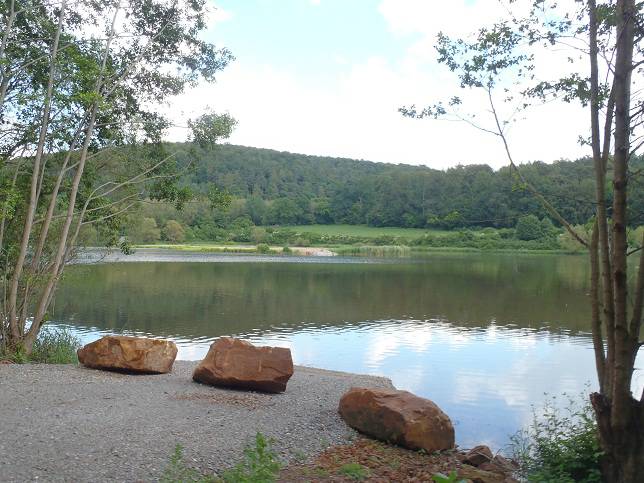 Twistesee 15.21 Uhr / Km 40,0 Im südlichen Teil des Sees gibt es nur wenige Stellen, wo man von der Strecke aus einen so schönen Blick auf den Twistesee hat wie hier. Meist versteckt sich der See hinter Bäumen und Büschen (siehe Foto zuvor). |