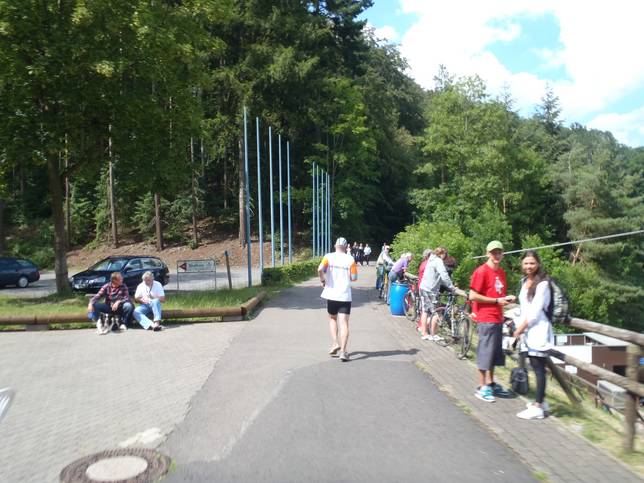 Twistesee 15.20 Uhr / Km 40,0 68:31 Minuten für die Kilo-meter 30 bis 40. Nun stand ich bei 4:17:19 Stunden. Bei 4:30 Stunden wollten meine Bekannten im Ziel einen Suchtrupp losschicken. Das wurde eng, zumal ich aus Runde 1 ja wußte, daß die letzten beiden Kilometer bis ins Ziel besonders lang waren. |