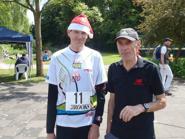 Twistesee Strandbad 15.31 Uhr / Km 42,195 Im Ziel mit dem Organisator Heinrich Kuhaupt, der sich als erstes bei mir nach der Km-Stand meiner GPS-Uhr erkundigte. |