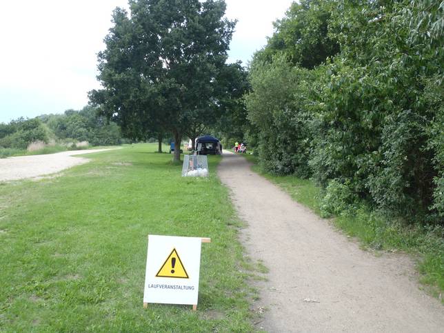 17.00 Uhr / Kilometer 0,1 Runde 1 16 Runden zu je 2650 Metern galt es zu laufen. Es waren also offiziell 42,4 Kilometer, eigentlich ein Ultramarathon, aber da wollen wir mal nicht so kleinlich sein. |