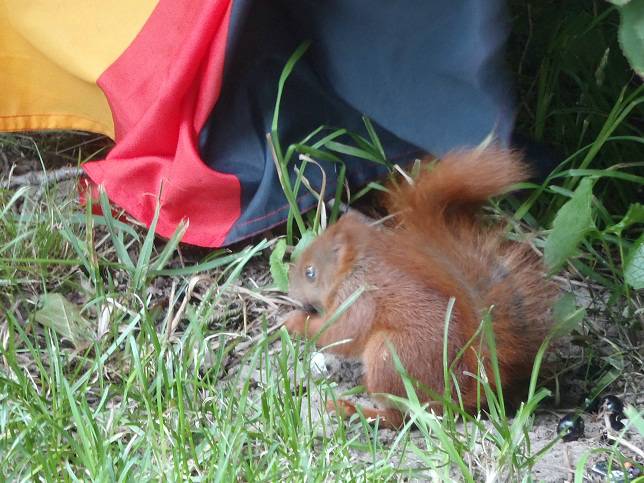 16.05 Uhr Bei der leckeren Läufer-Verpflegung wurde auch dieses Eichhörnchen schwach, daß während der Veranstaltung immer mal wieder vorbeischaute und sich immer etwas leckeres mitnahm. |