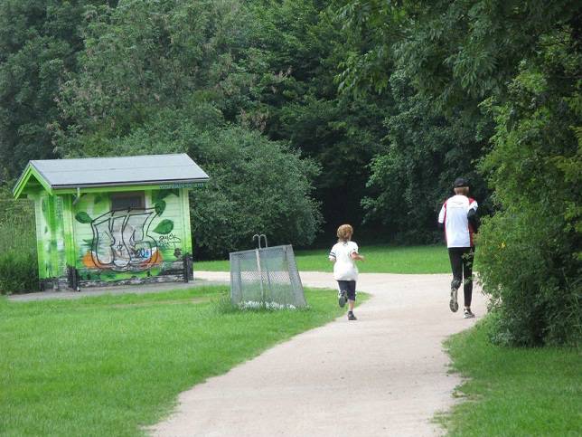 17.11 Uhr / Kilometer 2,0 Runde 1 Die Strecke um den Eich-baumsee ist flach, hat einen sehr gut laufbaren Untergrund und ist schön grün. Insgesamt ist die Strecke aber auch wenig abwechslungsreich und nicht sehr interessant... vor allem, wenn man dort den ganzen Tag Runde um Runde zieht. |
