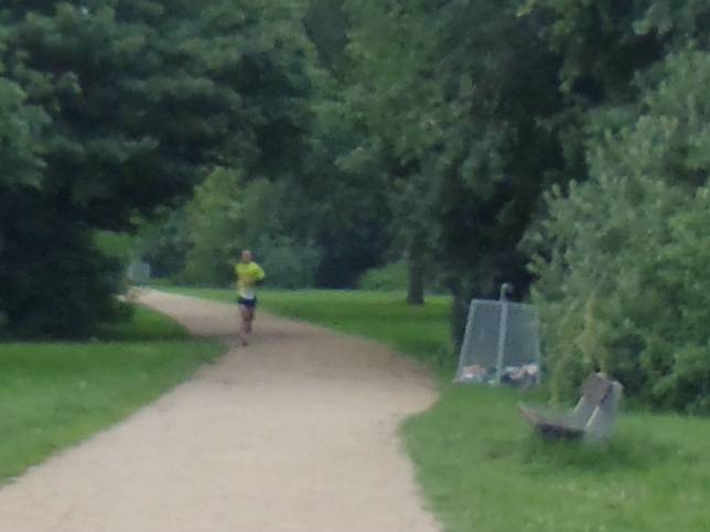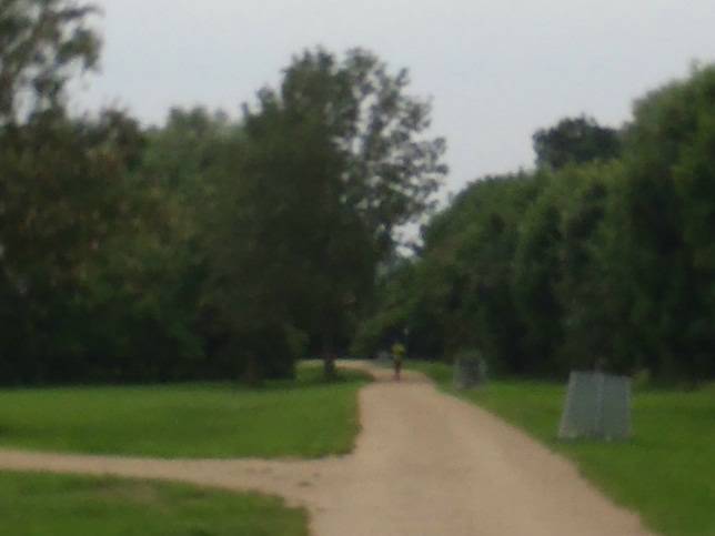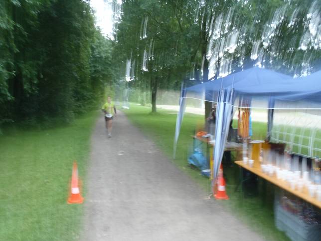 18.08 Uhr / Kilometer 12,0 Runde 5 Zwischenzeitlich hatte es zu regnen angefangen. Ab Runde 5 flogen mir keine Fliegen mehr ins Gesicht. Ich bin mir nicht sicher, ob sie vom Regen vertrieben wurde oder ich sie schon alle aufgegessen hatte... |