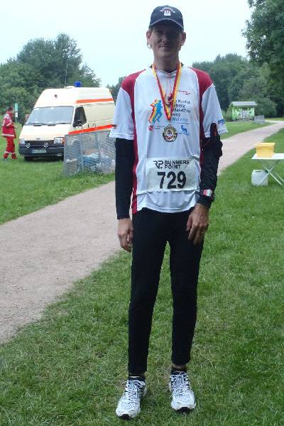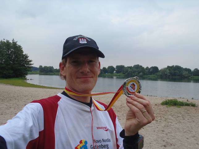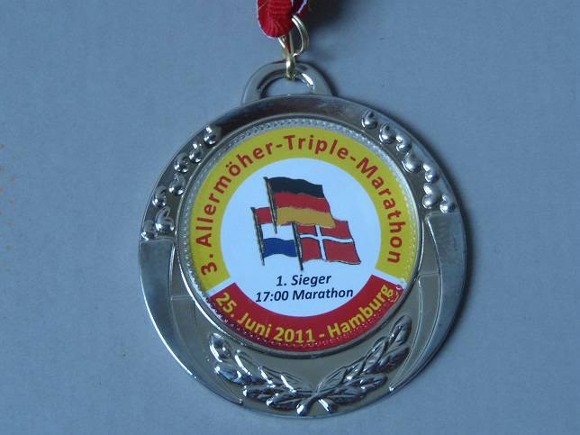 Eine solche Medaille hatte ich noch nie gesehen. Eine ganz eigene Siegermedaille. Wenn ich das gewußt hätte, wäre mir das Anstrengen nur halb so schwer gefallen :-). |