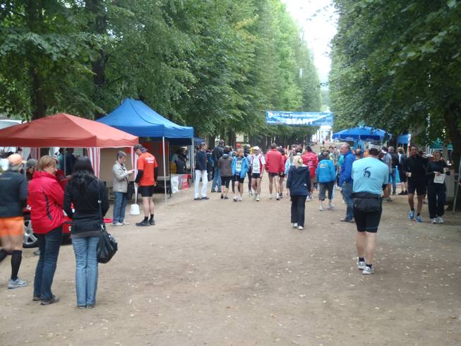 Hauptallee, 12.43 Uhr Allmählich versammelten sich die Läufer auf der Hauptallee. Neben dem Marathon gab es auch noch einen Halbmarathon, 10 Km (Walken oder Laufen), 5 Km und einen 420 Meter-Kinderlauf. Es gab aber bis 15.20 Uhr fünf Startzeiten. |