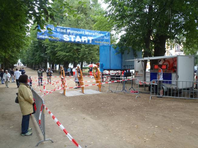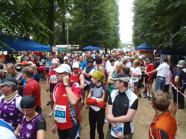 Hauptallee, 12.54 Uhr Die Startnummern waren reichlich verwirrend. Es gab die Nummern sowohl hochkant als auch quer, in weiß oder rot oder blau mit rot. Und das lief dann alles Marathon. Praktischer-weise war dann auch noch der Veranstalter eine Weile verschwunden. Das soll aber Tradition haben. Ach ja... |
