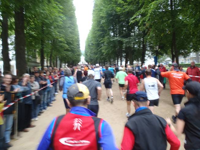 Hauptallee 13.00 Uhr / Km 0,0 Aber allen Wirrungen zum Trotze gab es pünktlich um 13.00 Uhr den Start. 213 Marathon-Läufer und 78 Walker über 10 Km gingen auf die Strecke. Später folgten noch 137 Fünf-Km-Läufer, 312 Zehn-Km-Läufer, 386 Halbmarathonies und eine mir nicht bekannte Zahl Kinder beim 420-Meter-Lauf. |