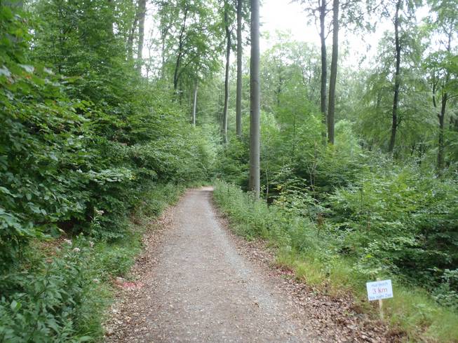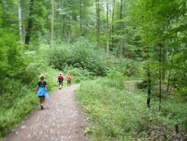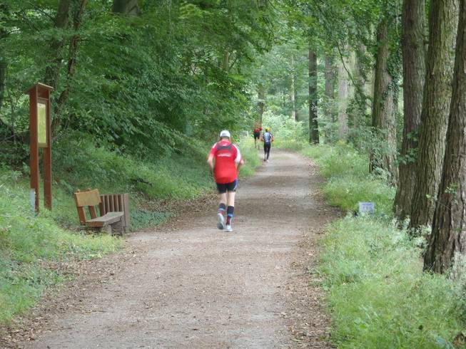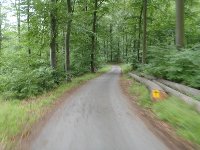 Langer Grund 13.46 Uhr / Km 7,0 An dieser Steigung kamen von hinten die Stöcke der Walker angetippelt. Das machte mich mächtig nervös. Sollte ich nun bei Km 7 von Walkern über-holt werden? |