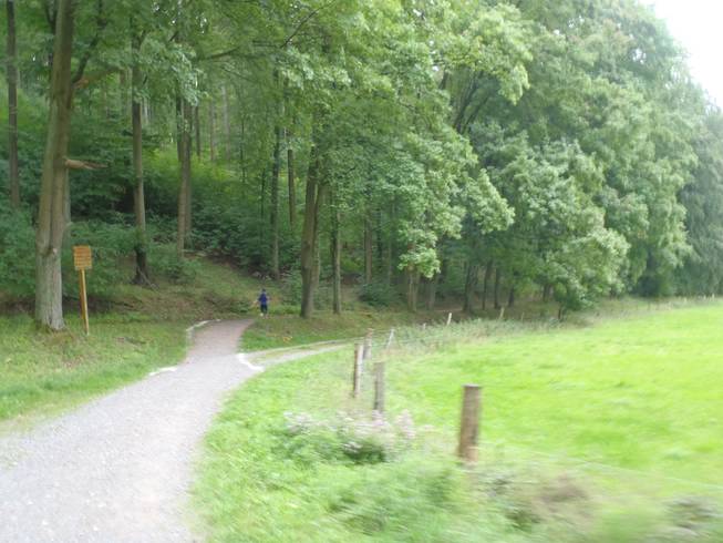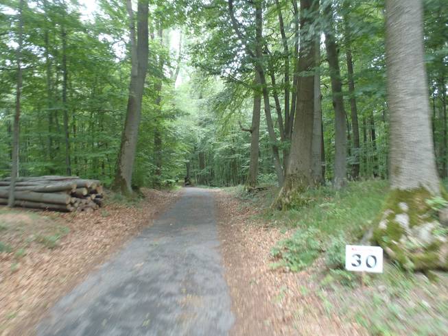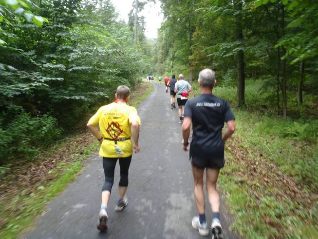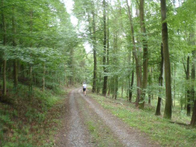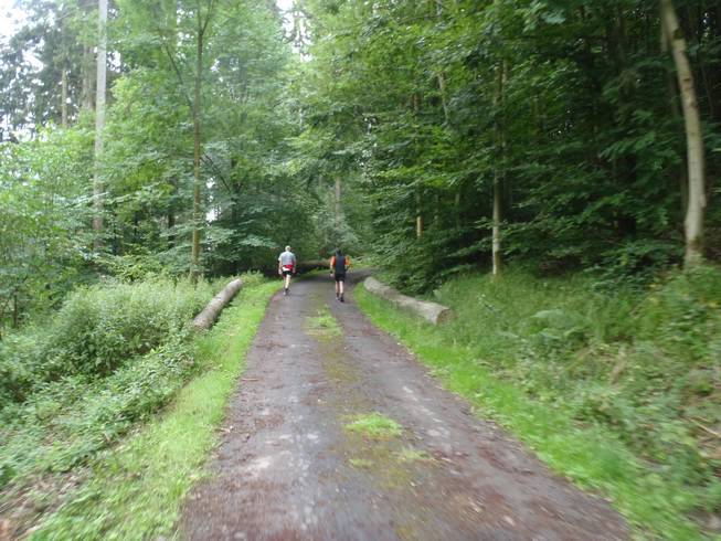 Fürstenweg 16.48 Uhr / Km 34,0 Ab Km 33 ging es fast nur noch bergab. Zum Glück lief man nun viel auf Asphalt und es war selten zu steil. Ich ließ es laufen. Angesichts meines Lauf-einbruchs zuvor machte mir das Tempo zwar Angst, aber mehr als noch einmal einbrechen konnte ich eigentlich nicht. |