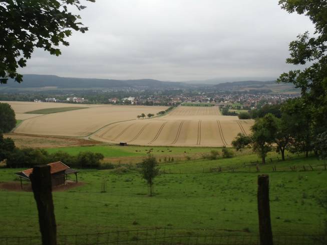 Philosophenweg 14.51 Uhr / Km 16,5 Ab und zu gab es auch mal schöne Ausblicke auf Bad Pyrmont. Aber die waren selten. Zu 98% lief man wirklich mitten im Wald. |