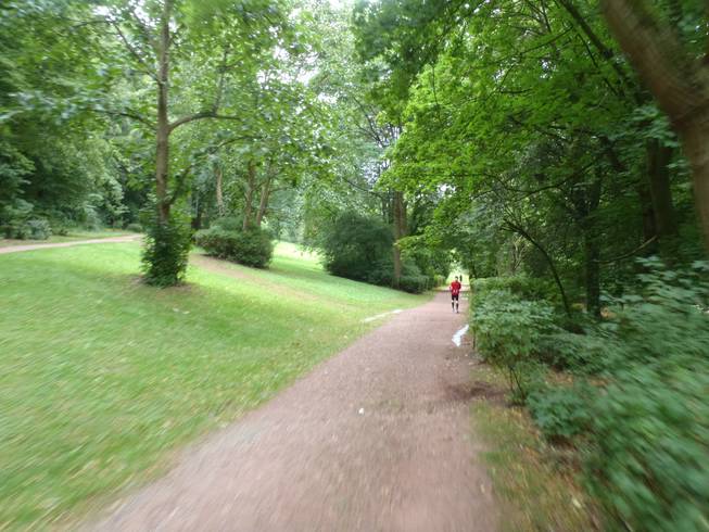 Bergkurpark 17.28 Uhr / Km 40,2 Noch zwei Kilometer. Und endlich war ich raus aus dem Wald. Nun ging es nur noch bergab. Km 40 hatte ich nach 4:25:33 Stunden erreicht. 1:01:21 Stunden für die Km 30 bis 40. Fast elf Minuten weniger als für die Km 20 bis 30. |