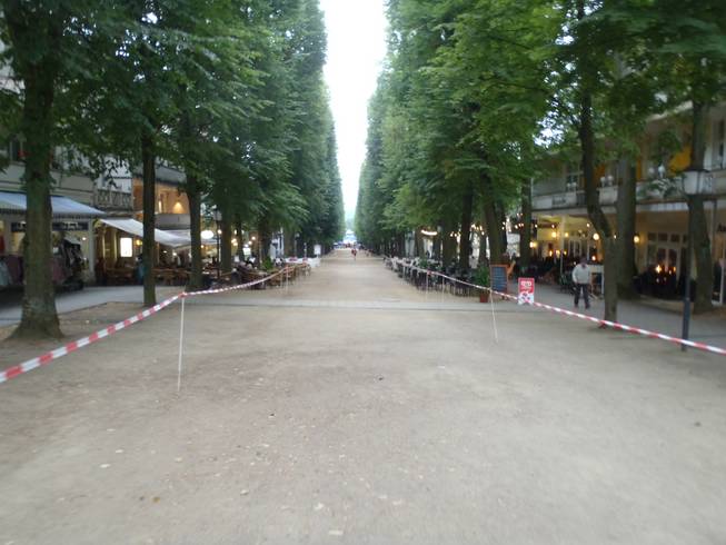 Hauptallee 13.01 Uhr / Km 0,1 Gleich zu Beginn ging es nach oben. Kein Wunder, die Start- und Ziellinie ist der tiefste Punkt der ganzen Strecke. Bei 105 Meter Höhe. Der höchste Punkt liegt bei 350 Metern und die gesamte Höhen-differenz liegt bei 690 Metern. |