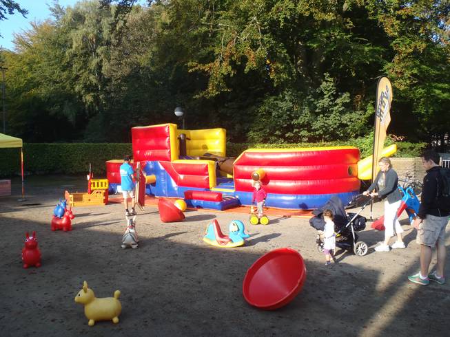 Jahnkampfbahn, Stadtpark, 9.45 Uhr Schnelle Läufer konnten ihre Kinder spielen lassen. Warum nur schnelle? Naja, nach vier Stunden war hier alles abgebaut. |