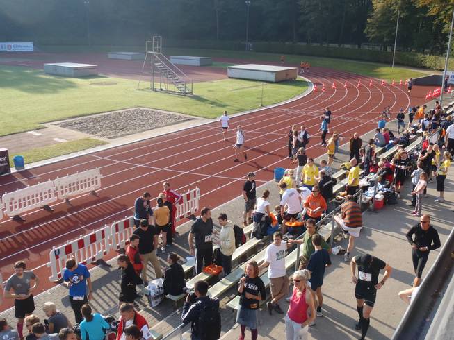 13.56 Uhr / Km 41,8 Runde 10 Ein letztes Mal der Lauf in die Jahnkampfbahn hinein. Bei der Gelegenheit wurde ich sogar noch überholt. |