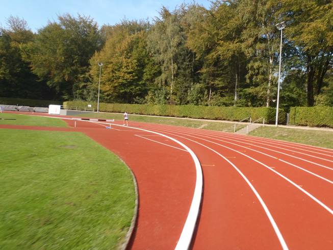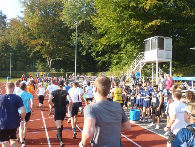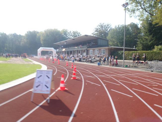 10.01 Uhr / Km 0,1 Runde 1 Gleich nach 50 Metern auf der Bahn ging es aus dem Stadion raus. 10 Runden zu je 4,22 Km lagen vor mir. Und alles auf einer Strecke, die ich aus dem Training, dem Weg zur Post oder den Spielplatzbesuchen mit meiner Tochter bestens kannte. Landschaftliche Überraschungen waren also nicht zu erwarten. |