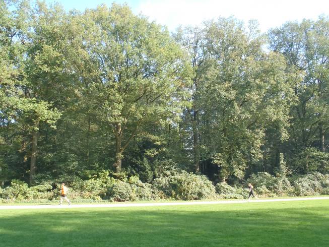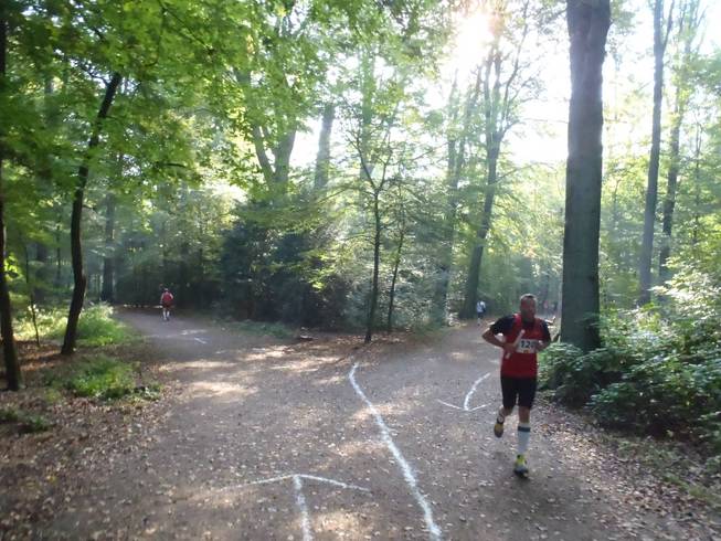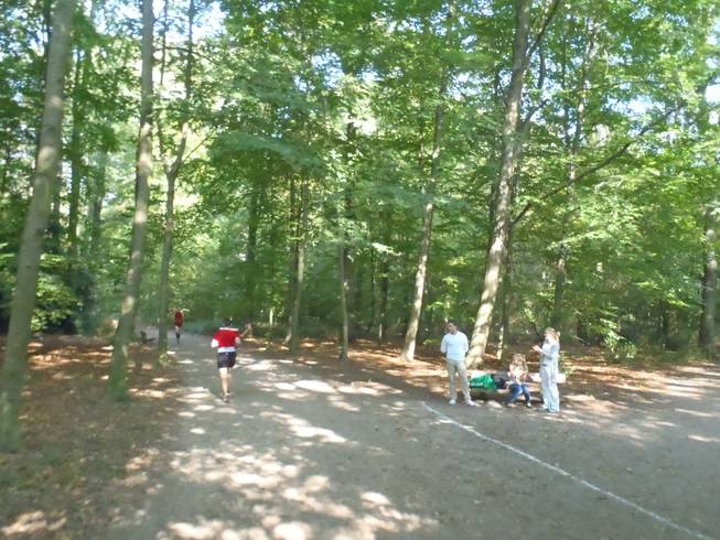 11.28 Uhr / Km 16,0 Runde 4 Der Eindruck täuscht übrigens nicht. Der Lauf ging zu 75% durch den Wald. Das machte die Temperaturen etwas erträglicher. Eine Pinkelpause mußte ich auch einlegen. In Ermangelung von Dixie-Klos nahm ich einfach das Gebüsch, hinter dem ich sonst auch... ich meine... mache ich sonst natürlich niemals... nee nee... ich doch nicht... |