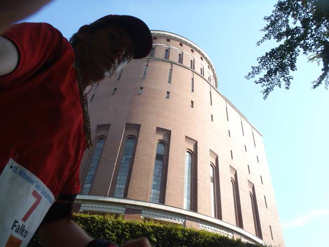 12.06 Uhr / Km 23,0 Runde 6 Vorne ich, hinter mir das Planetarium. 65 Meter hoch, 1912-1915 zunächst als Wasserturm erbaut, dann 1930 umgebaut. |
