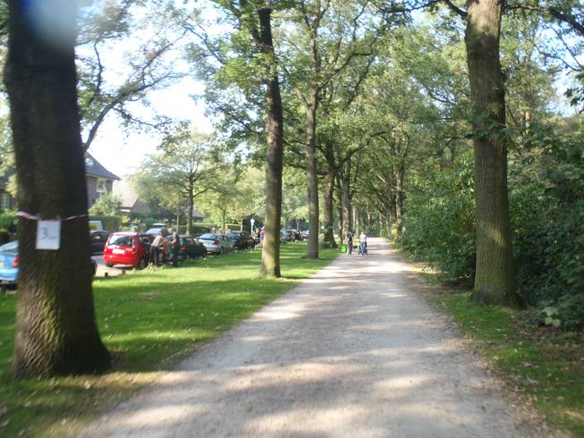 12.05 Uhr / Km 22,5 Runde 6 Gegenverkehr, sehr enge Kurve, Spaziergänger, Streckenposten. An dieser Ecke war was los. Irgend-wann später wurden hier mit vielen Hütchen die beiden Spuren getrennt und alles mit Kreide-strichen und -pfeilen sehr sorgfällig bemalt. Das sah ich dann in Runde 10. Warum nicht früher? Und warum überhaupt? |