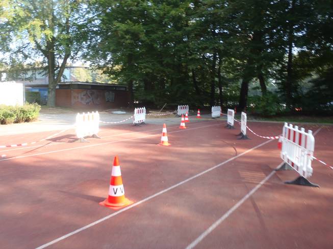 Linnering, Stadtpark, , 8.35 Uhr Im Stadtpark war schon alles für den Lauf vorbe-reitet. Warum man alle Parkplätze absperrte verstand ich nicht. |