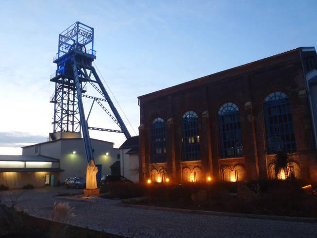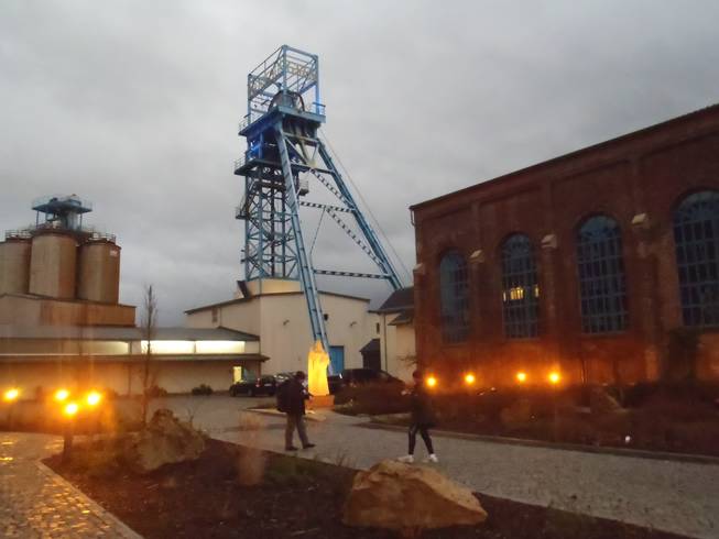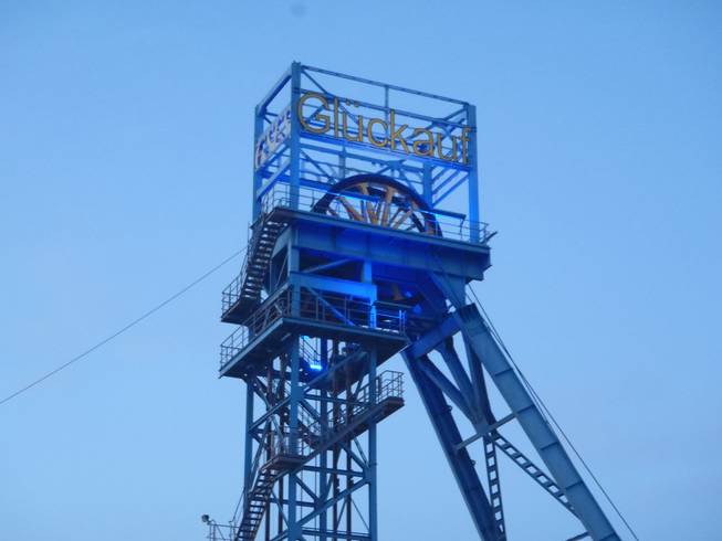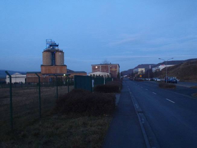 Erlebnisbergwerk Glückauf 7.39 Uhr Fast noch dunkel war es, als ich am Bergwerk ankam. Nachts hatte es leichten Frost gegeben und der Weg war stellenweise gar glatt gewesen. |