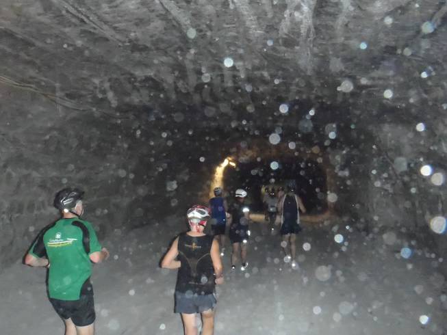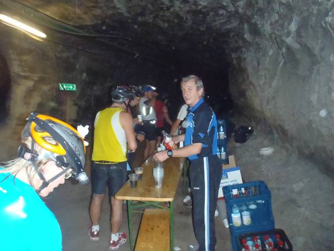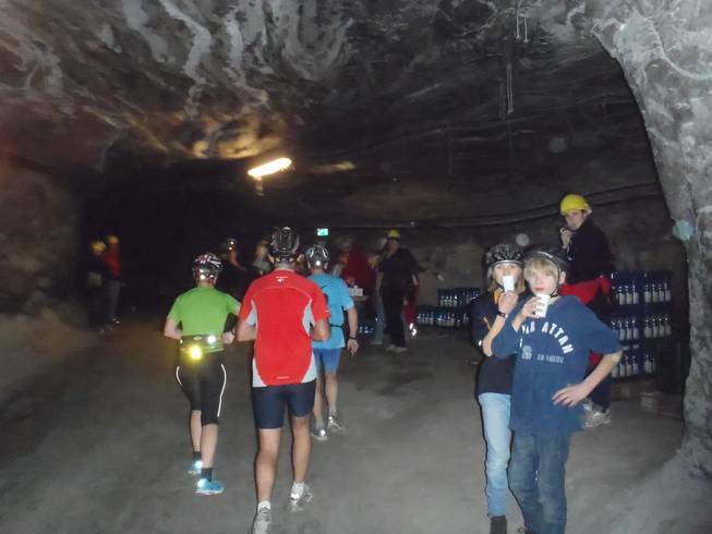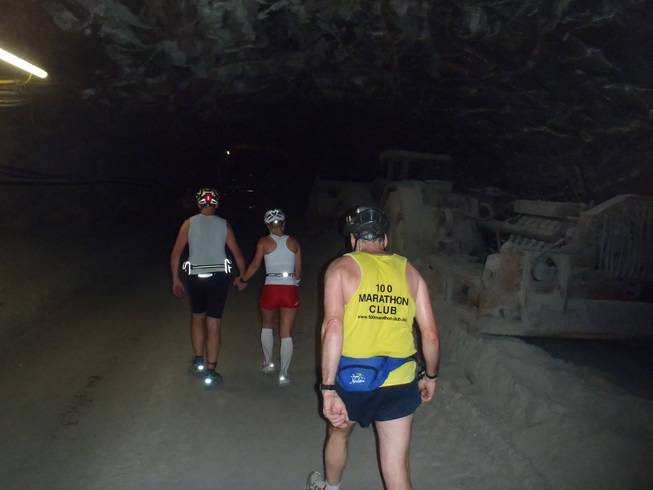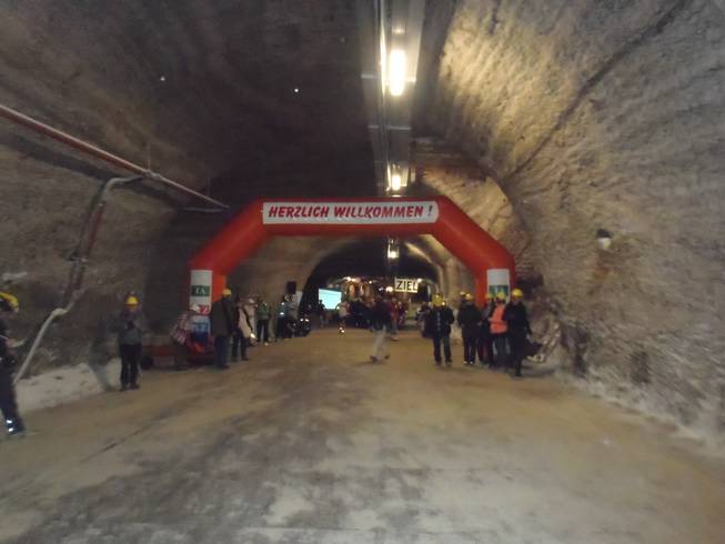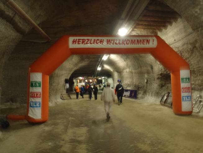 8.16 Uhr Angekommen. 700 Meter unter der Erde im früheren Kalisalzbergwerk. Von 1892 bis 1991 wurde hier Kalisalz gefördert. Nun kann man das Bergwerk im Rahmen von organisierter Führungen besichtigen. Oder man läuft Marathon. Es gibt aber auch Wettbewerbe für Mountain-Bikes und Biathleten. |