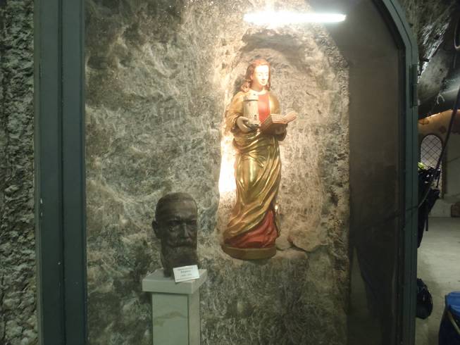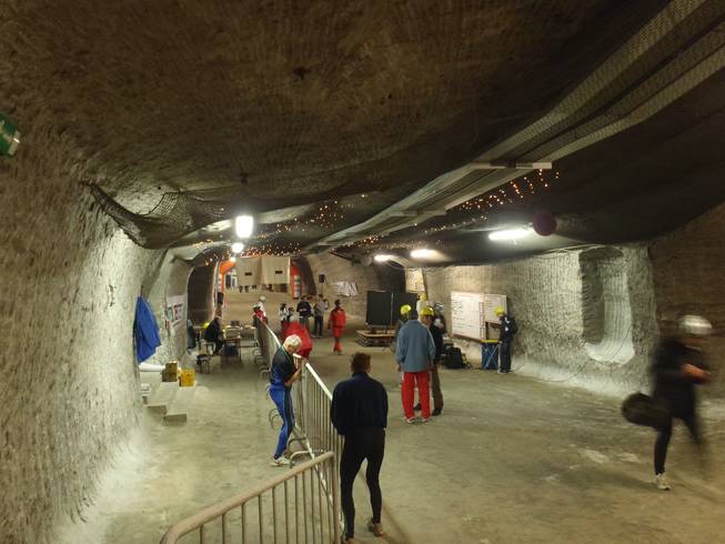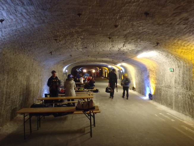 8.34 Uhr Eine Kegelbahn gibt es auch. Dazu noch einen großen Konzertsaal und gar einen unterirdischen See, den man mit Kanus gefahren kann und eine 36 Meter lange Salzrutsche. Das war allerdings am Lauftag alles zu. Mehr Infos zum Bergwerk und den