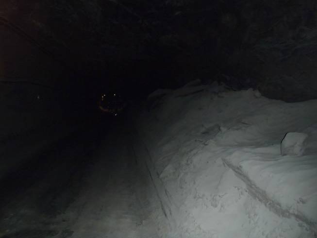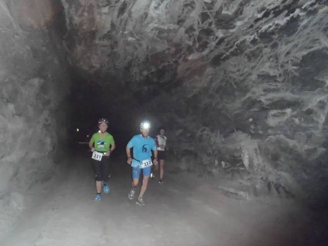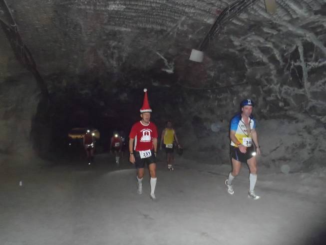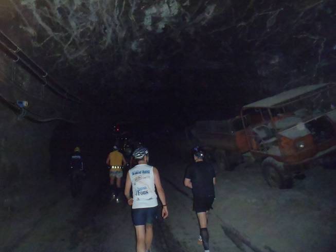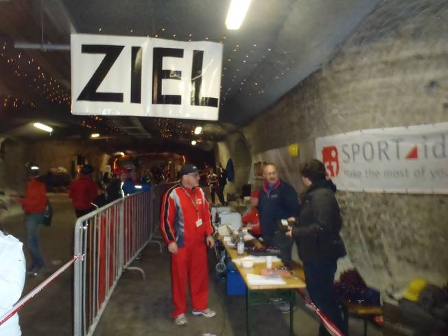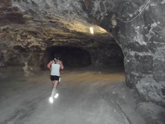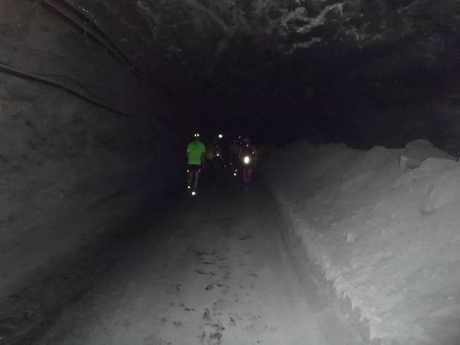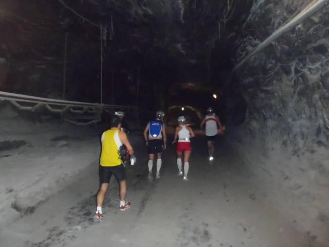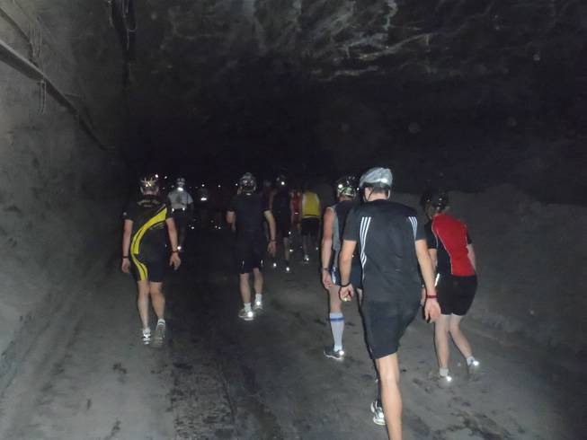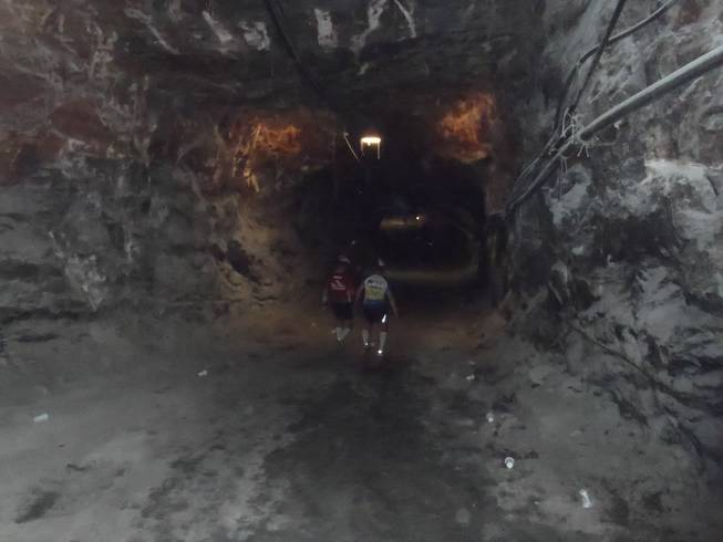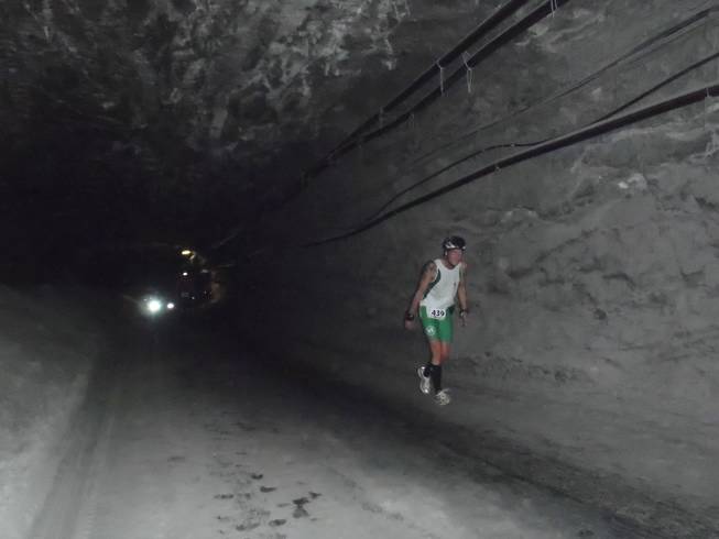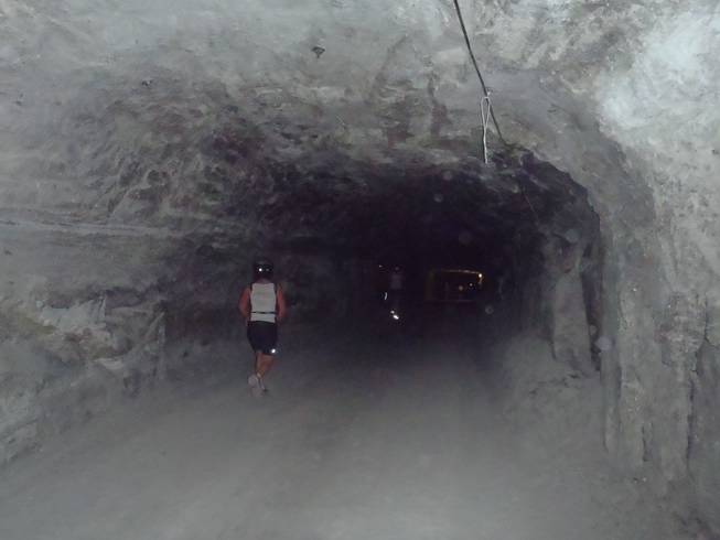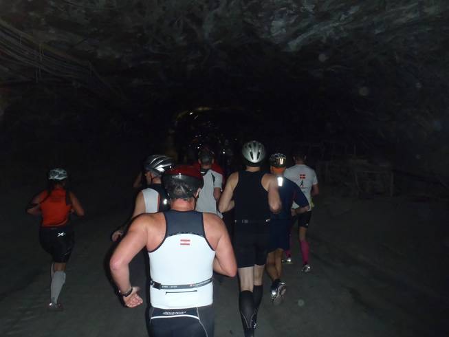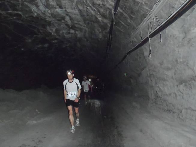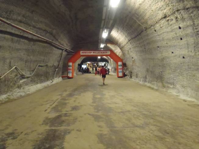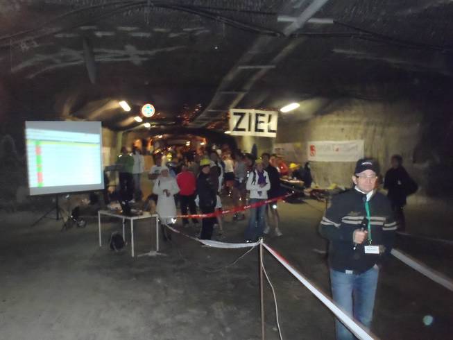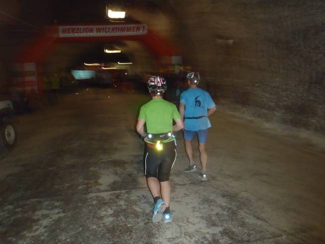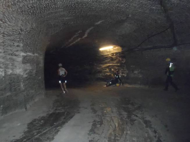 Runde Drei 11.28 Uhr / Km 11,5 38:50 Minuten für Runde Zwei. Ohne den dichten Pulk von Läufern zu Beginn wurde es zum Teil sehr dunkel im Schacht. So alle 50 Meter gab es zwar eine Lampe, aber dazwischen sah man zum Teil die Hand vor Augen nicht. |