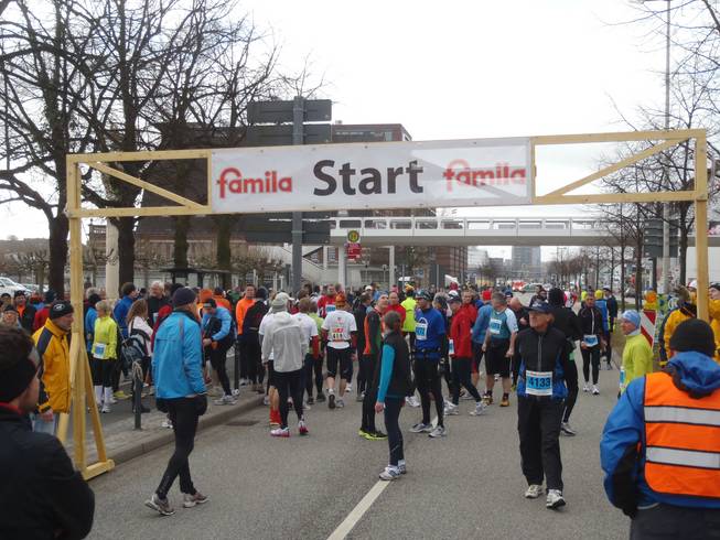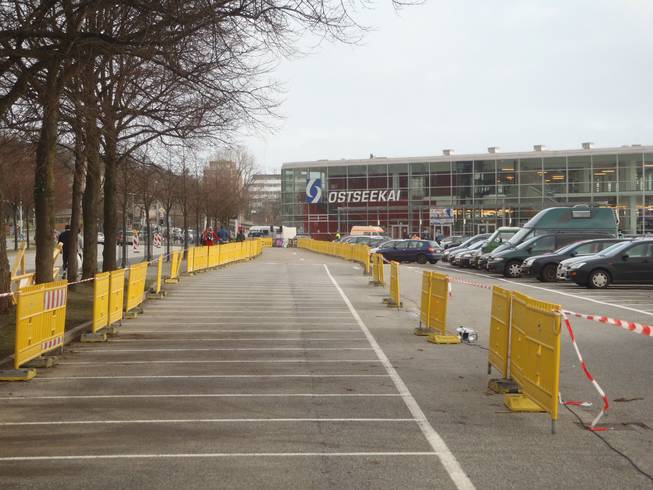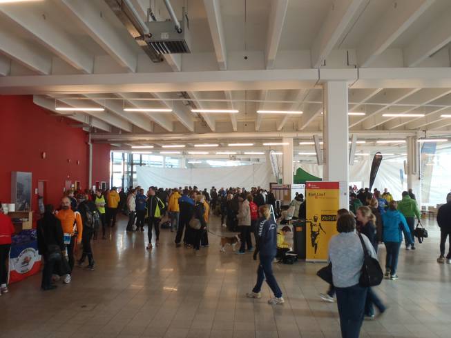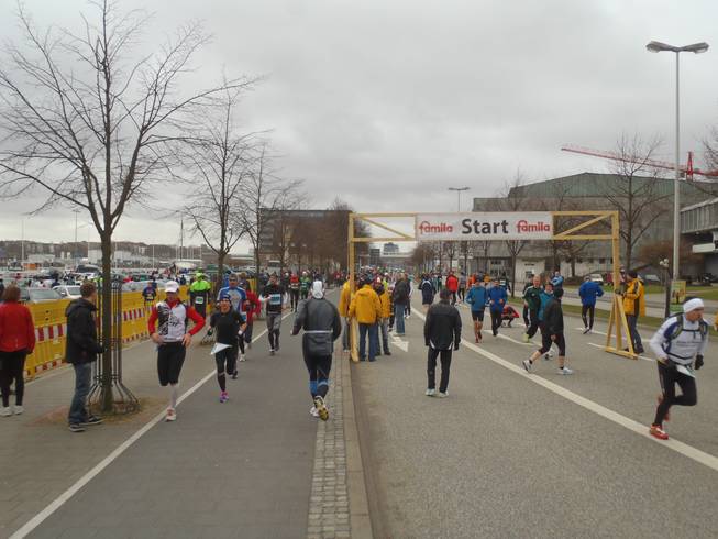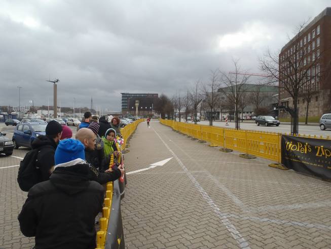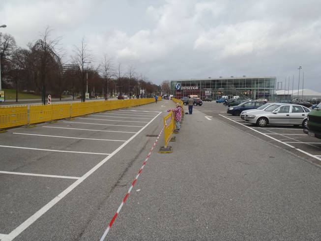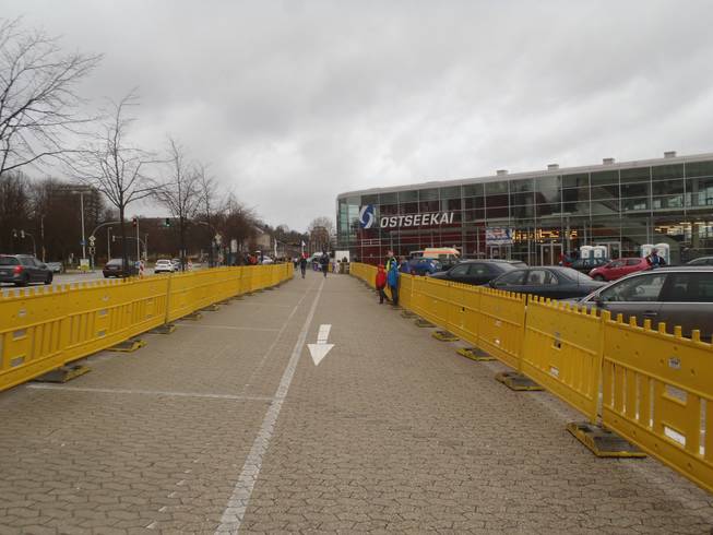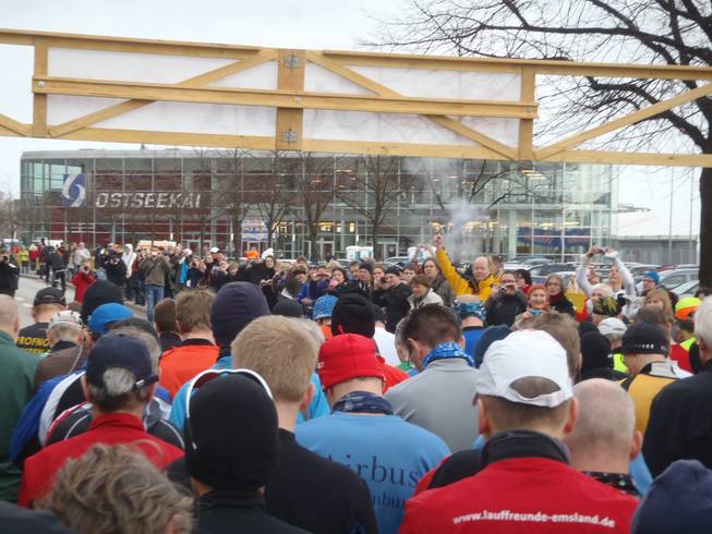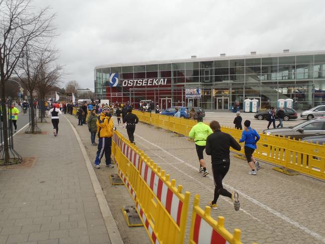 Ostseekai, 9.09 Uhr Da ist schon einmal der Zieleinlauf vor der Halle am Ostseekai. |
