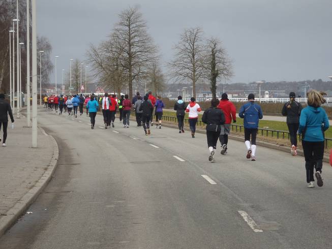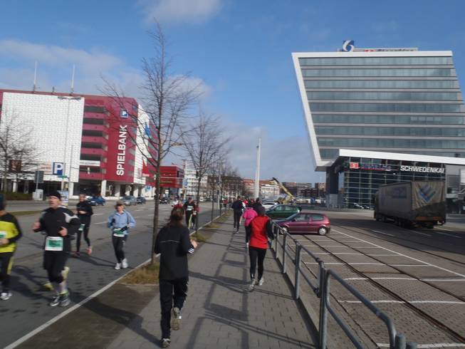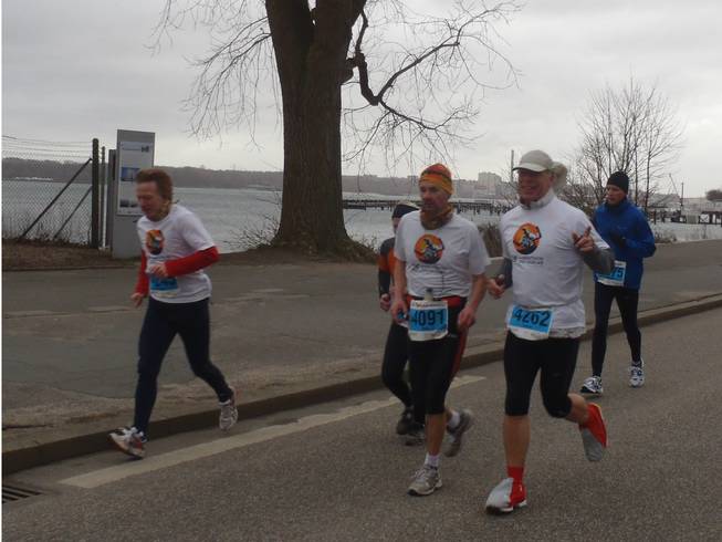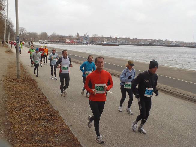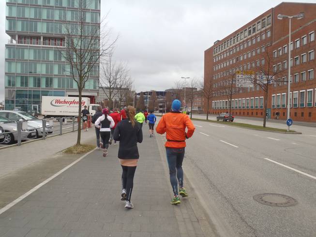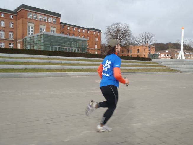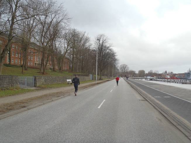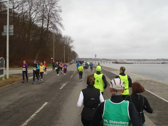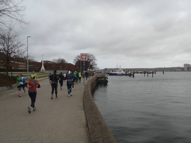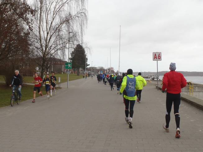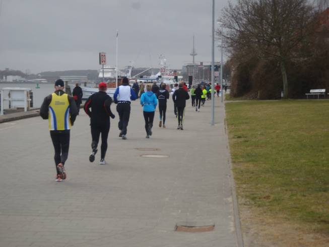 Kiellinie, Runde 1 10.25 Uhr / Kilometer 1,0 Auf der Gegenseite kamen schon die Zehn-Km-Läufer entgegen. |