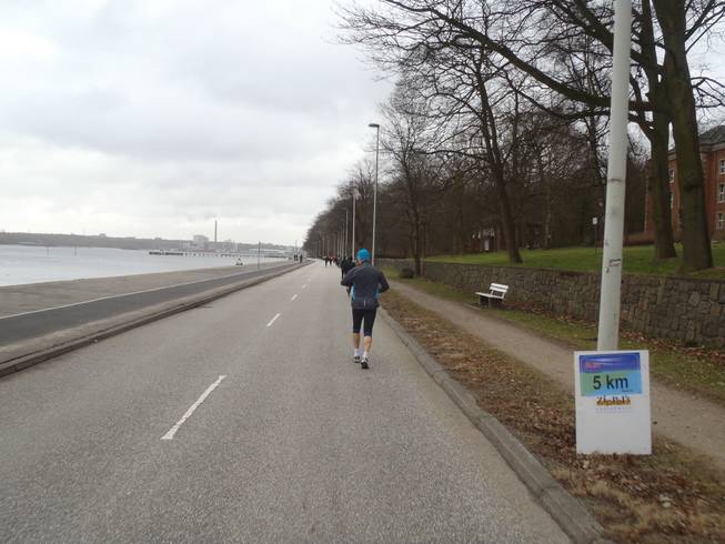 Hindenburgufer, Runde 1 10.48 Uhr / Kilometer 5,0 Ich hielt einen Schnitt von grob 5:35 Min/Km. So ganz passte es in Kiel mit den Kilometermarkierungen ja nie, aber die Strecke ins-gesamt ist korrekt. |