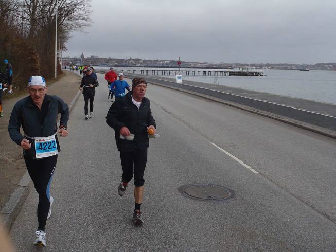 Kiellinie, Runde 2 11.24 Uhr / Kilometer 11,5 55:21 Minuten hatte ich für die ersten 10 Kilometer gebraucht. Das war 21 Sekunden langsamer als gehofft, aber mit 58:17 Minuten für die erste der vier Runden lag ich prima auf Kurs unter vier Stunden. |