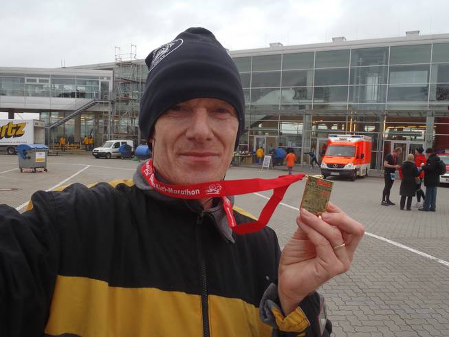 Ostseekai, 14.09 Uhr Und geschafft. Die schon 68. Marathon-Medaille war mein! 3:48:33 Stunden war es am Ende geworden. Nur 54:39 Minuten für die letzte Runde. Also knapp drei Minuten schneller als die vorletzte Runde. So fit hatte ich mich nicht eingeschätzt. |