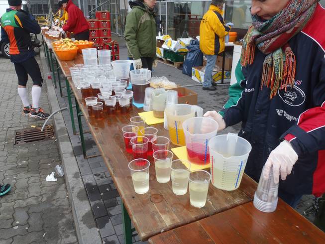 Ostseekai, 14.13 Uhr Die Zielverpflegung bot ja ein farbenfrohes Bild. Und lecker war es auch noch. |