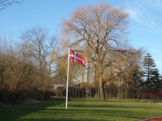Jahnsportplatz, 9.45 Uhr Warum auf dem Sportplatz nun eine dänische Fahne weht kann ich auch nicht erklären. Eine deutsche Fahne weht dort übrigens nicht. |