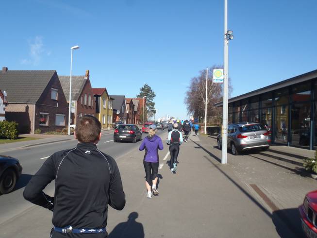 L273 Hauptstraße 12.28 Uhr / Kilometer 5,0 Wie schon in Kiel war ich auch in Husum fließig am Überholen. Und am Anfang gab es auch genug Läufer dafür. Foto: |