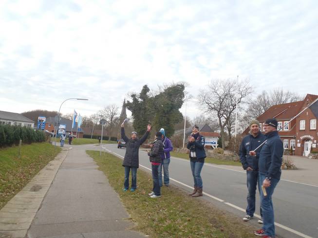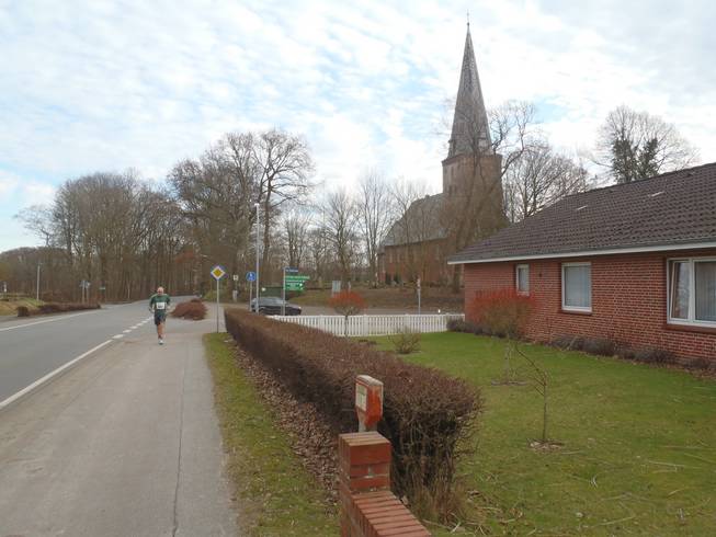 Kirchenstraße Breklum 13.55 Uhr / Kilometer 21,2 3,60 Meter Höhe. Da man sich ja erst im Ziel viel größer fühlt als man ist, reichte es hier aus. |