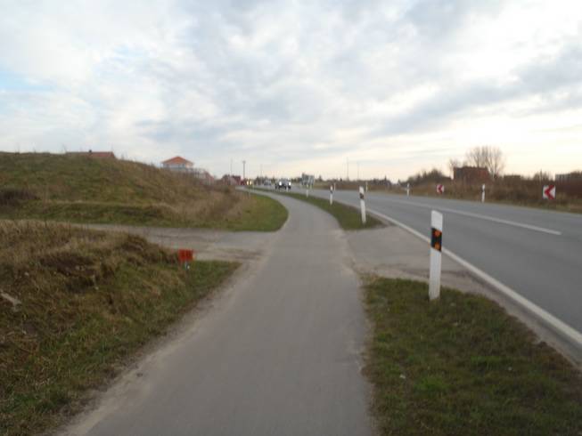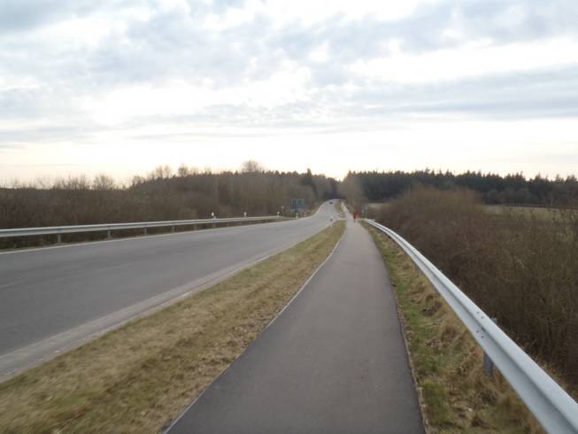 L273 Hauptstraße 12.50 Uhr / Kilometer 9,0 Schön anzusehen war das Wetter. Und mit 7°C war es auch nicht kühl. Nur der Wind, der machte einem zu schaffen. Auf dem Hinweg allerdings zunächst einmal durch die Angst vor dem Rückweg. |