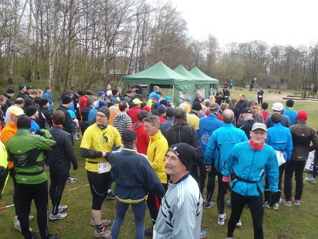 Runde 1 / Kilometer 0,0 9.01 Uhr Fast pünktlich dann der Start. Bei 4°C ging es auf die Strecke. Anderes als in Lohne zwei Wochen zuvor hatte ich mich diesmal wärmer angezogen. Laut Wetterbericht waren aber auch Sturmböen aus Nord und Schneeschauer zu erwarten. |