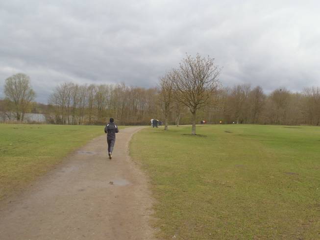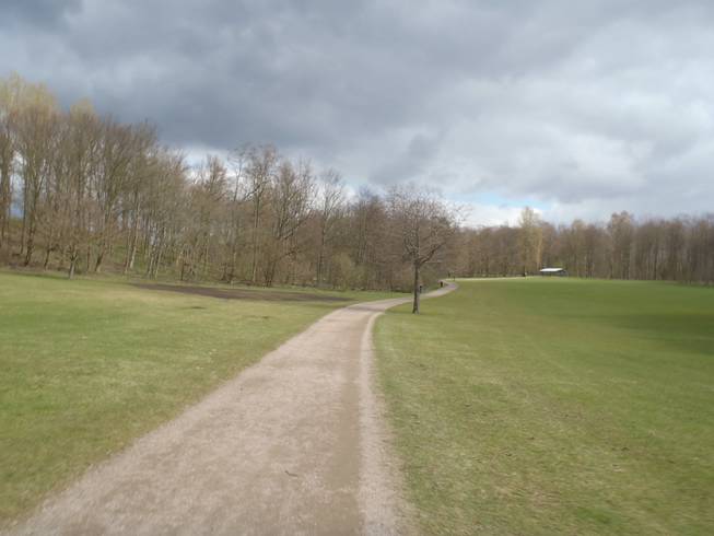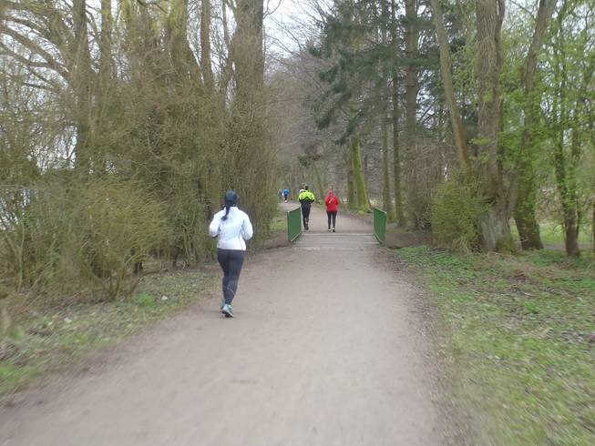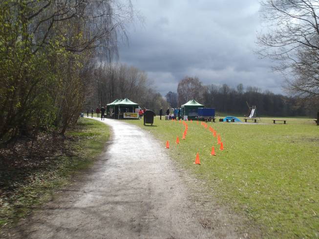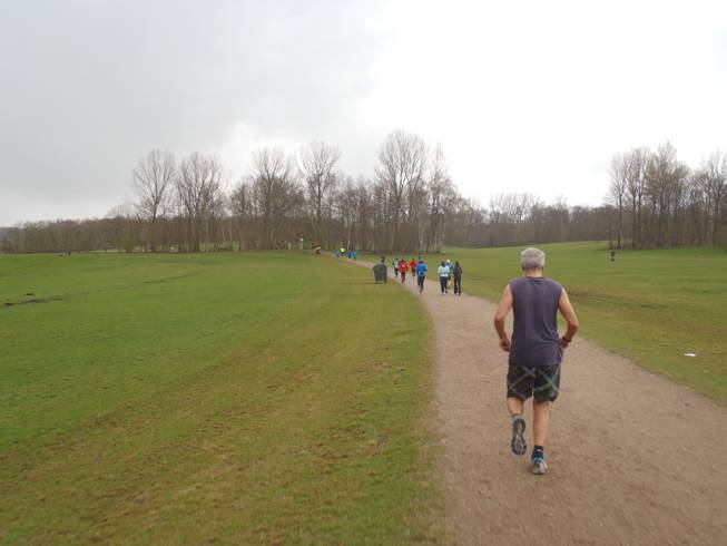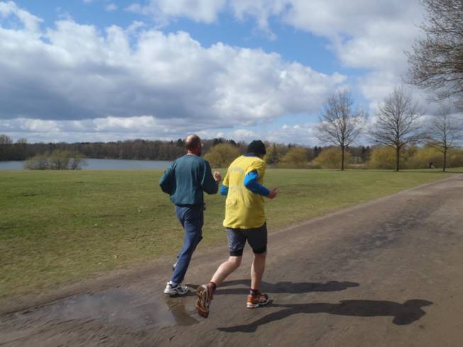 Runde 1 / Kilometer 4,0 9.23 Uhr Im Februar 2010 lief ich hier auf Schnee und Eis und im September 2011 bei heißen 26°C. Das Wetter zu Ostern hatte es aber auch in sich. |