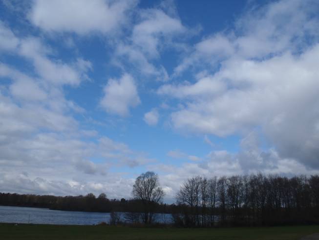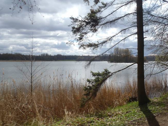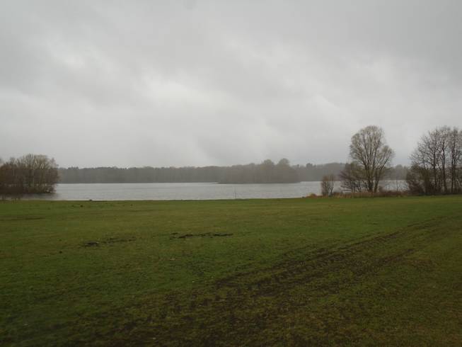 Runde 11 / Kilometer 40,7 12.49 Uhr Und hier noch einmal der See von der Südspitze aus. Bei deutlich besserem Wetter als beim ersten Foto von dieser Stelle. |